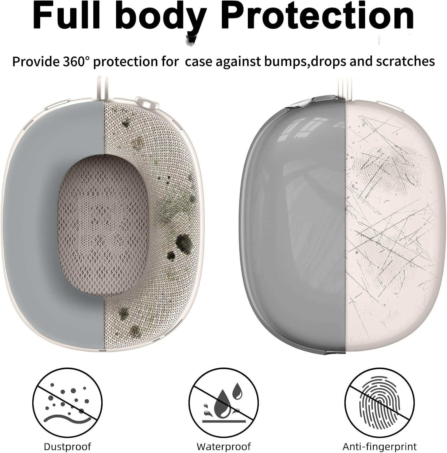 Comprehensive Protection: Made from premium. durable silicone & TPU material . the cover can provides 360° protection for Headphones against bumps. drops and scratches. Anti-fingerprint. Anti-Scratch. dustproof. sweatproof and waterproof.